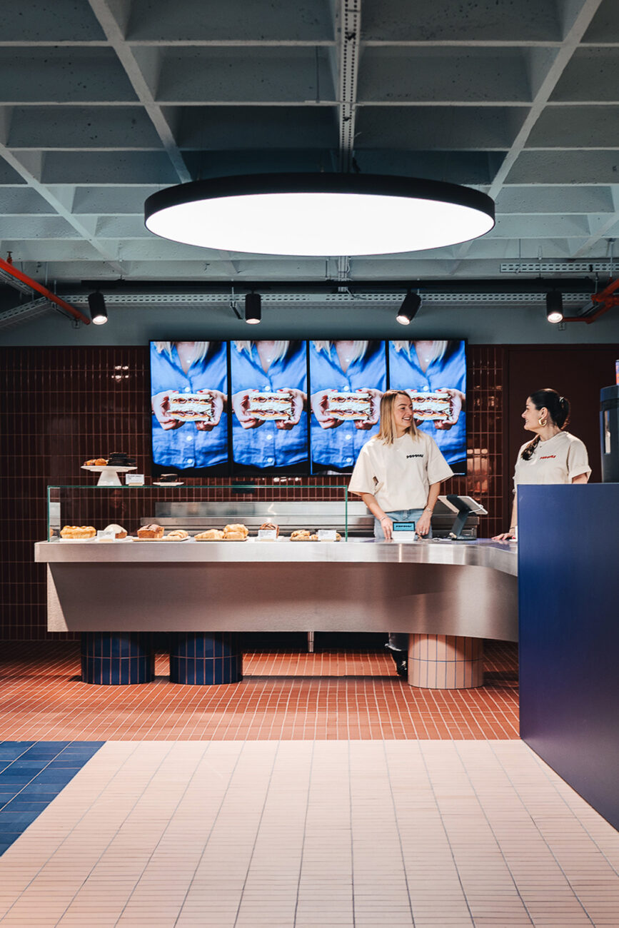 Comme chez Vasarely la couleur n’est pas seulement décorative mais constructive : c’est un outil architectural qui structure l’espace autant que les usages (take away, bakery, coffee…) et accompagne l’expérience du visiteur de façon intuitive.